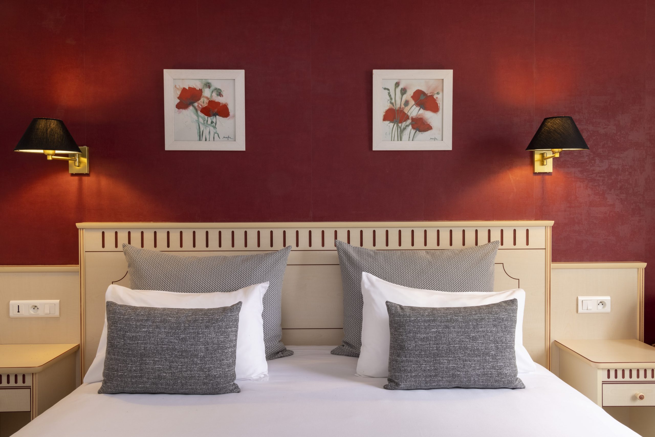 Grand confort et calme avec une ambiance romantique aux teintes d’ivoire et de rouge.